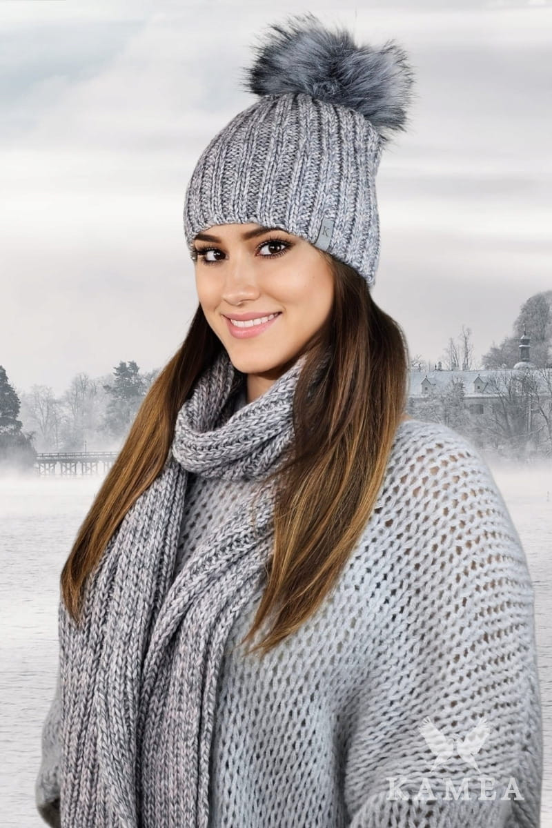 WEZYR COMPLETE Sada sestávající z čepice a šály, vyrobená z vysoce kvalitní příze s obsahem vlny. Příze se vyznačuje zajímavou barevností - směsí několika barev. Čepice je navíc zateplená fleecem s ekologickou kožešinovou bambulí. Souprava je měkká na dotek, hřeje a především poskytuje pohodlí. 50% akryl 50% vlna Pokyny pro péči: praní: 30°C Ruční praní, nebělit, nežehlit, max. při 110°C KategorieFC: Dámské doplňky | Šály a šátky | Dámské doplňky | Čepice, barety, čelenky Kolekce: Podzim/Zima Pohlaví: Ženské Barva: Světle šedá