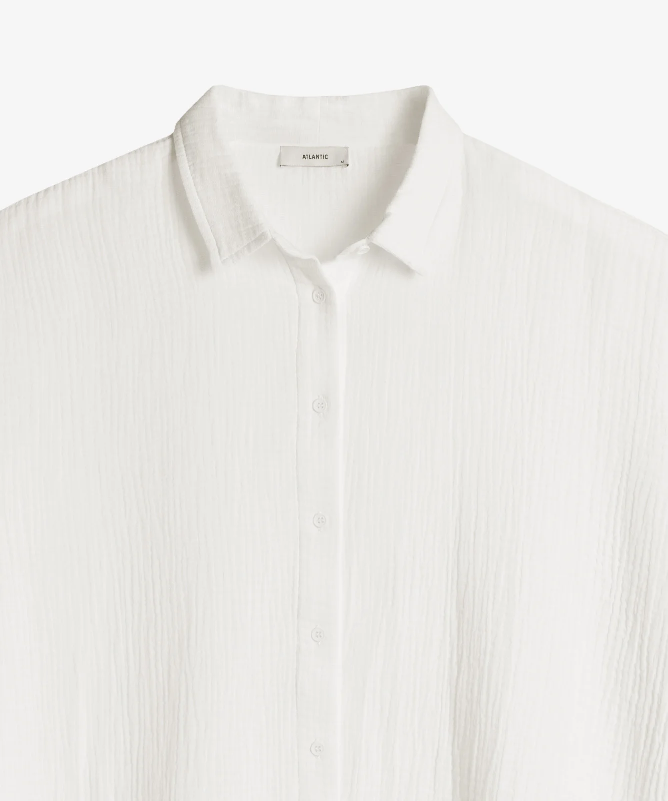 Komplet damski Muślin, Kolekcja Fashion - HomewearDamski komplet to połączenie oversize’owej bluzki i krótkich spodenek. Bluzka ma długie rękawy, kołnierzyk i zapinana jest na guziczki. Spodenki mają dwie wygodne kieszenie, a w talii wykończone są ściągaczem. Komplet wykonany jest z muślinu, który jest lekki i przyjemny w dotyku. Muślin wykonany w 100% z bawełny to materiał przewiewny, delikatny i „oddychający” - w ciepłe dni zapewnia przyjemną ochłodę. Niewątpliwą zaletą muślinu jest też jego niepodrażnianie i nieuczulanie skóry oraz wygoda, którą zapewnia. écruECRU100% bawełna
