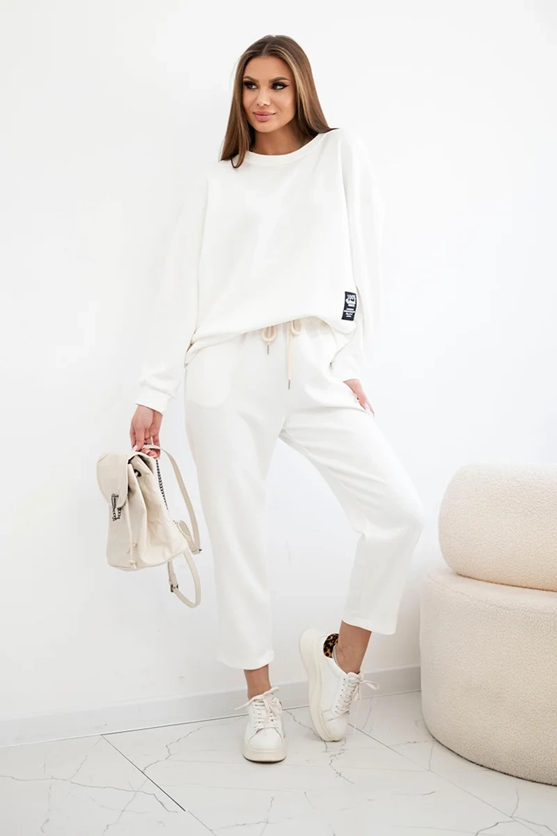 Domů Oblečení a móda Dámské oblečení Dámské halenky a košile Komplet máslová látka teplákové + kalhoty ecru UNI