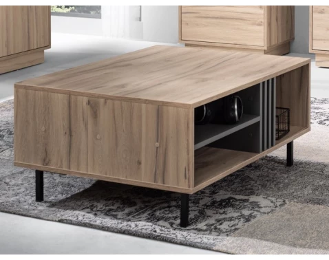 Konferenční stolek Almo s antracitovými lamelami a dubovým dřevodekorem. Elegantní design a praktické využití.