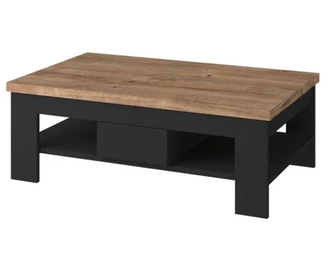 Konferenční stolek Boston s přihrádky a úložnými zásuvkami, vyrobený v kombinaci matně černé a dřevodekoru dub ribbeck, spojuje kvalitní a moderní design.