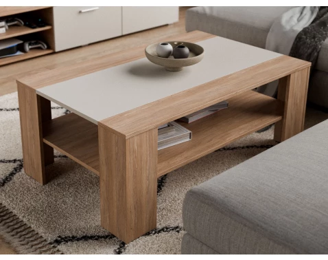 Praktický obdélný konferenční stolek v kombinaci dub jantarový/béžový kašmír - světlý a zároveň velmi útulný nábytek, který vytvoří příjemné domácí prostředí.