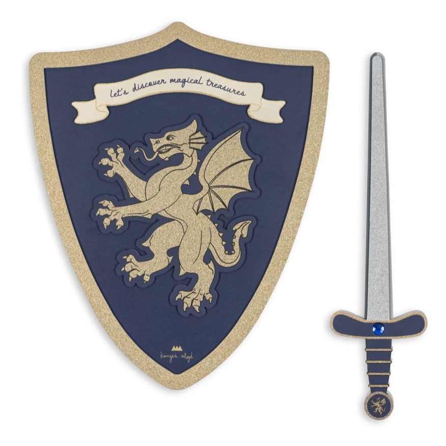 Konges Sløjd Dětská hračka Štít a meč Midnight Navy, modrá barva, plast. Proměňte dětskou hru v kouzelné dobrodružství s Konges Sløjd a kouzelným mečem a štítem. Měkoučký meč a štít z lehkého EVA materiálu jsou navrženy tak, aby byly bezpečné i pro ty nejmenší rytíře a princezny. Stačí jen trocha fantazie a svět pohádek se rázem stává skutečností.