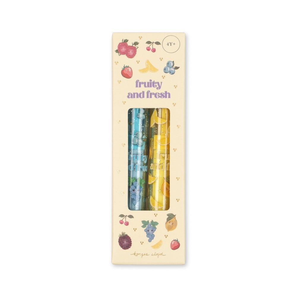 Konges Sløjd Guma v tužce s vůní Lemon – set 2 ks, modrá barva, žlutá barva, plast. Sada dvou voňavých gum s ovocnou vůní od dánské značky Konges Slojd zpříjemní školní povinnosti i každodenní psaní či kreslení. Hravý design a svěží aroma promění běžné gumování v zábavnější zážitek, který ocení děti i dospělí.
