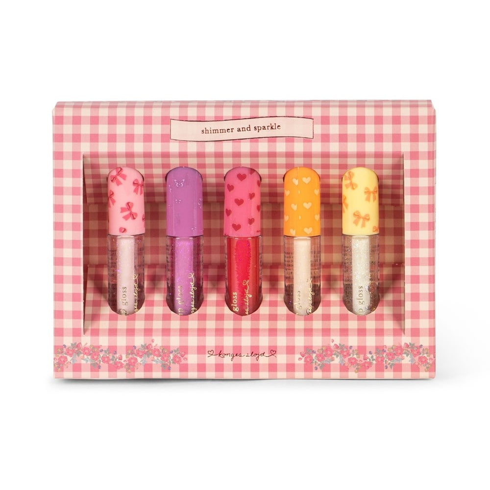Konges Sløjd Sada třpytivých lesků na rty – 5 ks, růžová barva, plast. Sada lesků s třpytkami od dánské značky