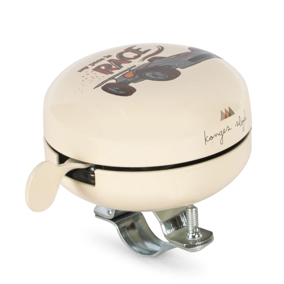 Konges Sløjd Zvonek na kolo / odrážedlo Race, krémová barva, kov. Zvonek na kolo od dánské značky Konges Sløjd je stylový a praktický doplněk pro malé cyklisty. Jeho ilustrace formule potěší malého motoristu a zároveň zajistí jeho bezpečnost při jízdě.