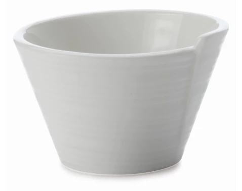 Porcelánová kónická miska o výšce 5,5 cm v elegantní bílé barvě zaujme svým hladkým povrchem a jemným vroubkovaným dekorem. Ideální například na dochucovadla.