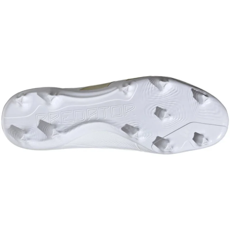 Kopačky adidas Predator League FG IF6346 Poloamatérské kopačky adidas Predator jsou určeny pro hráče, kteří dávají přednost hře na tvrdém přírodním trávníku. Pocházejí z kolekce Dayspark Pack. Syntetický svršek Hybridfeel s vypouklou strukturou. Lepivé prvky Strikescale na vnitřní straně chodidla pro přirozenou kontrolu. Tvarovaná pata. Šněrovací model s jednodílným podšitým jazykem. Podrážka s položenými hřeby.