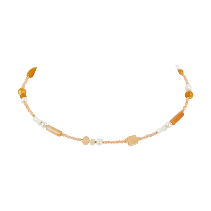 Tento elegantní náhrdelník z naší autorské kolekce Summer Symphony je symbolem letní elegance a pohody. S délkou 44 cm, kterou lze rozšířit o dalších 5 cm díky prodlužovacímu řetízku, se náhrdelník přizpůsobí jakémukoliv výstřihu a nabízí bezkonkurenční univerzálnost pro letní dny i večery. Náhrdelník je bohatě zdoben sladkovodními perlami a jemnými korálky z achátu, které jsou známé svou krásou a jedinečnými vlastnostmi. Achát přináší rovnováhu, ochranu a emocionální stabilitu, což jej činí nejen krásným, ale i silně symbolickým doplňkem. Jemné pastelové odstíny korálků v kombinaci s klidným leskem perel evokují atmosféru klidného letního dne u moře. Ideální pro každodenní nošení nebo jako výrazný doplněk k večernímu outfitu, tento náhrdelník je skvělou volbou pro ženy, které chtějí do svého šatníku vnést kousek přírodní elegance. Navíc se skvěle hodí pro vrstvení s dalšími šperky z naší letní kolekce, například s ocelovými řetízky s přívěskem, což umožňuje vytvoření osobitého a stylového vzhledu.
