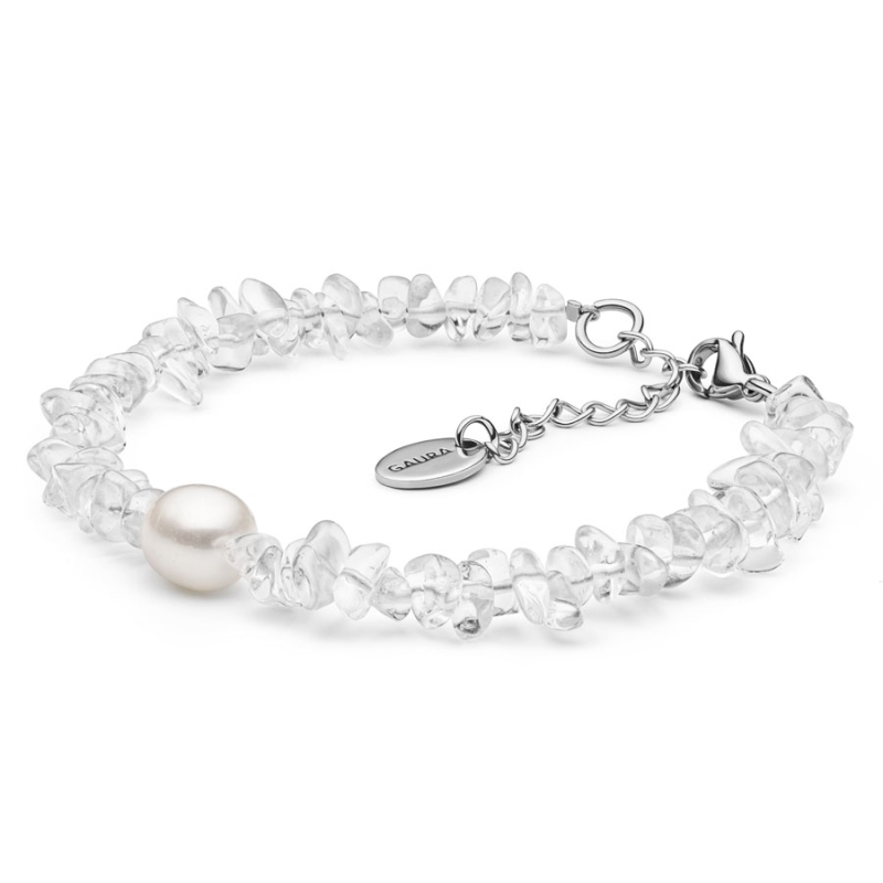 Tento unikátní náramek spojuje přírodní krásu křišťálu a sladkovodní perlu a stříbra v dokonalou harmonii. Nepravidelné korálky z křišťálu vynikají svou průzračností, která zachycuje světlo a vytváří efekt oslnivého třpytu. Dominantní sladkovodní perla dodává šperku eleganci a nadčasovost. Náramek je ideálním doplňkem pro slavnostní i každodenní nošení. Jeho design osloví ženy, které preferují jemné a originální šperky s přírodním charakterem. Kombinace křišťálu a perly symbolizuje čistotu a rovnováhu, což z něj činí také krásný dárek pro výjimečné příležitosti. Tento šperk je ztělesněním elegance a přírodní estetiky. Dokáže podtrhnout vaši osobnost a dodat šarm jakémukoliv outfitu.