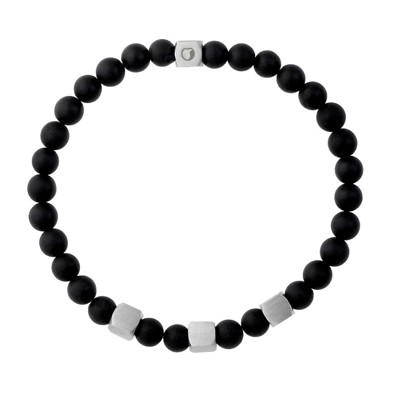 Trendy pánský náramek Leonardo, složený z černých 6 mm matných onyxů, nesmí chybět ve vaší sbírce šperků. Náramku dodávají šmrnc kovové kostky, jedna z nich je ozdobena logem značky Manoki. Korálky jsou zavěšeny na odolném pružném lanku o délce 21 cm. Hodí se prakticky na každé mužské zápěstí. Náramek je skvělým doplňkem ke každodennímu outfitu pro muže, kteří mají rádi decentní, ale originální doplňky. Noste jej samostatně nebo si vytvořte vlastní kompozici s jinými náramky. Dokonale se hodí do každodenního i formálního stylu. Onyx - přírodní polodrahokam je ochranným kamenem proti kletbám a negativní energii. Odstraňuje negativní emoce z těla, chrání před zlem, čistí mysl, dodává vytrvalost a odvahu. Onyx pochází z řečtiny a znamená „dráp“. Onyx je kamenem válečníků a neúnavných cestovatelů. Tento minerál má obrovskou moc a majitel onyxových šperků se stává pánem svého osudu, dokáže ovládat své emoce a neúnavně se snaží dosáhnout svých cílů.