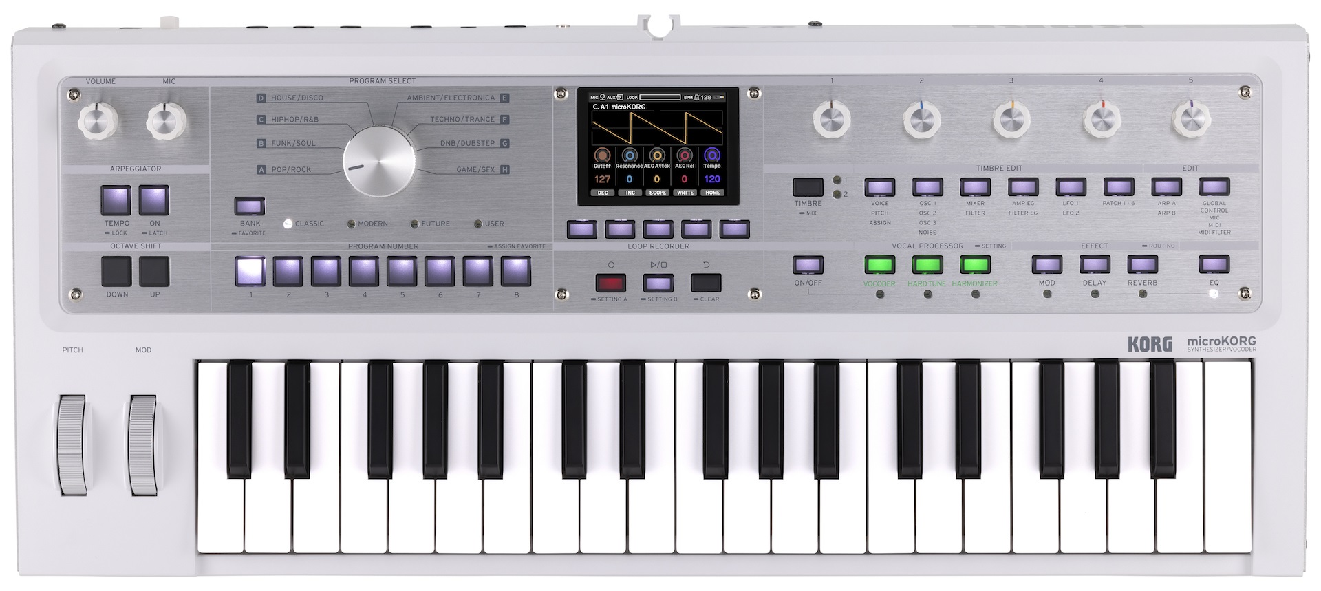 Polyfonní digitální syntezátor KORG MicroKORG je jeden z nejikoničtějších a nejznámějších syntezátorů v historii hudby, který způsobil revoluci v hudebním světě díky svým jedinečným vlastnostem a nezaměnitelným zvukům. Byl použit v nespočtu legendárních vystoupení a nahrávek a jeho odkaz trvá již více než 20 let. Proslulý a milovaný hudebníky, zvukovými inženýry i producenty po celém světě se nyní microKORG vyvinul na výkonnější, flexibilnější a všestranější úroveň. Přestože si zachovává ně