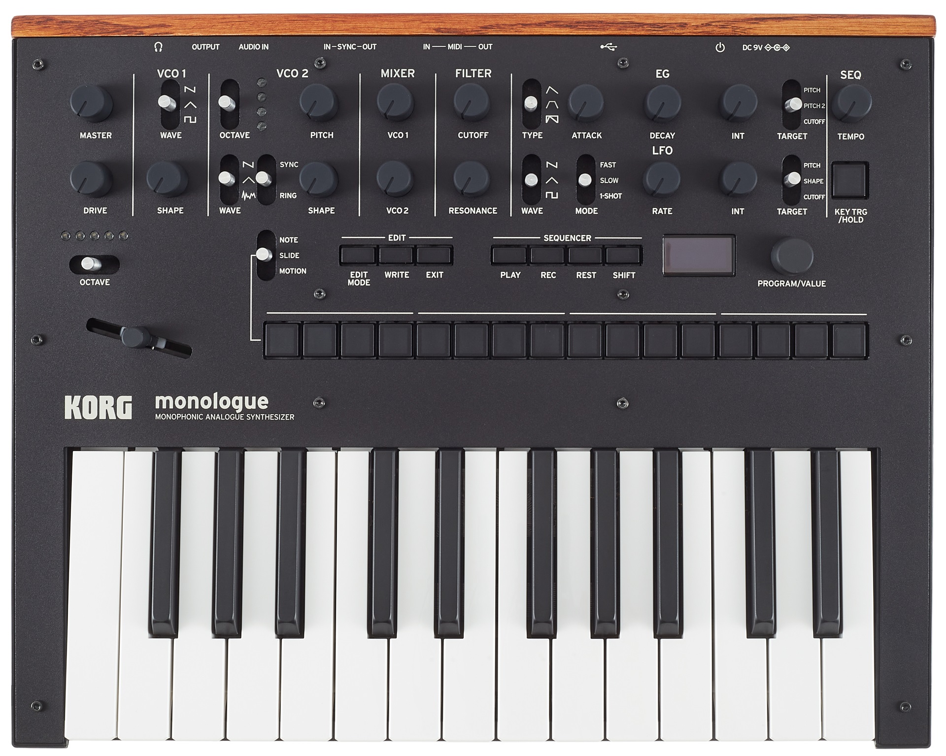 Syntezátor Korg Monologue je analogový syntezátor, který si nejde nezamilovat. Je plně programovatelný, disponuje pokročilým, 16krokovým sekvencérem, zvukově je neuvěřitelně variabilní a funguje i na baterie, takže tvořit můžete úplně všude. A navíc je to designový kousek s presety od Aphexe Twina. Monologue zvukovým okruhem vychází z oblíbeného modelu Minilogue, oproti němuž je monofonní. Struktura 2VCO, 1VCF, 1EG, 1VCA a 1LFO zůstává, stejně jako možnosti pokročilého tvarování zvukové vlny a přepínač sync