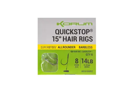 KORUM Návazec Big Fish Hair Rigs W/Quickstops 38cm Velikost 12 8ks