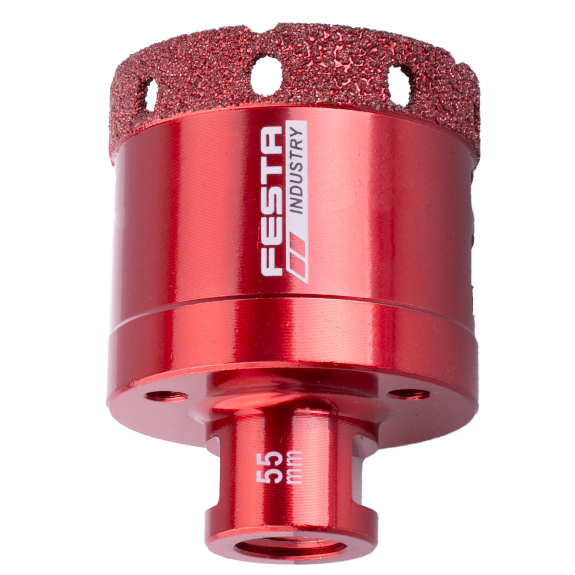 Profesionální vykružovací korunka s ostřím z diamantového prachu. Tyto vykružováky jsou určené na všechny druhy tvrzeného kamene a jeho sloučeniny, keramické dlaždice, mramor, gres (slinutá dlažba), žulu a na většinu stavebních materiálů. Diamantová vykružovací korunka FESTA INDUSTRY je určena pro suché i mokré vrtání. Její přednosti nejlépe vyniknou při použití v úhlové brusce, při použití redukce lze ale využít i v elektrické, nebo aku vrtačce. Korunka není opatřena vodícím vrtákem a vykružování otvoru tak musí probíhat postupně. Nejprve se "zakousne" hrana pod úhlem cca 45° a následně se korunka srovná kolmo k materiálu a dořezává se celý otvor.