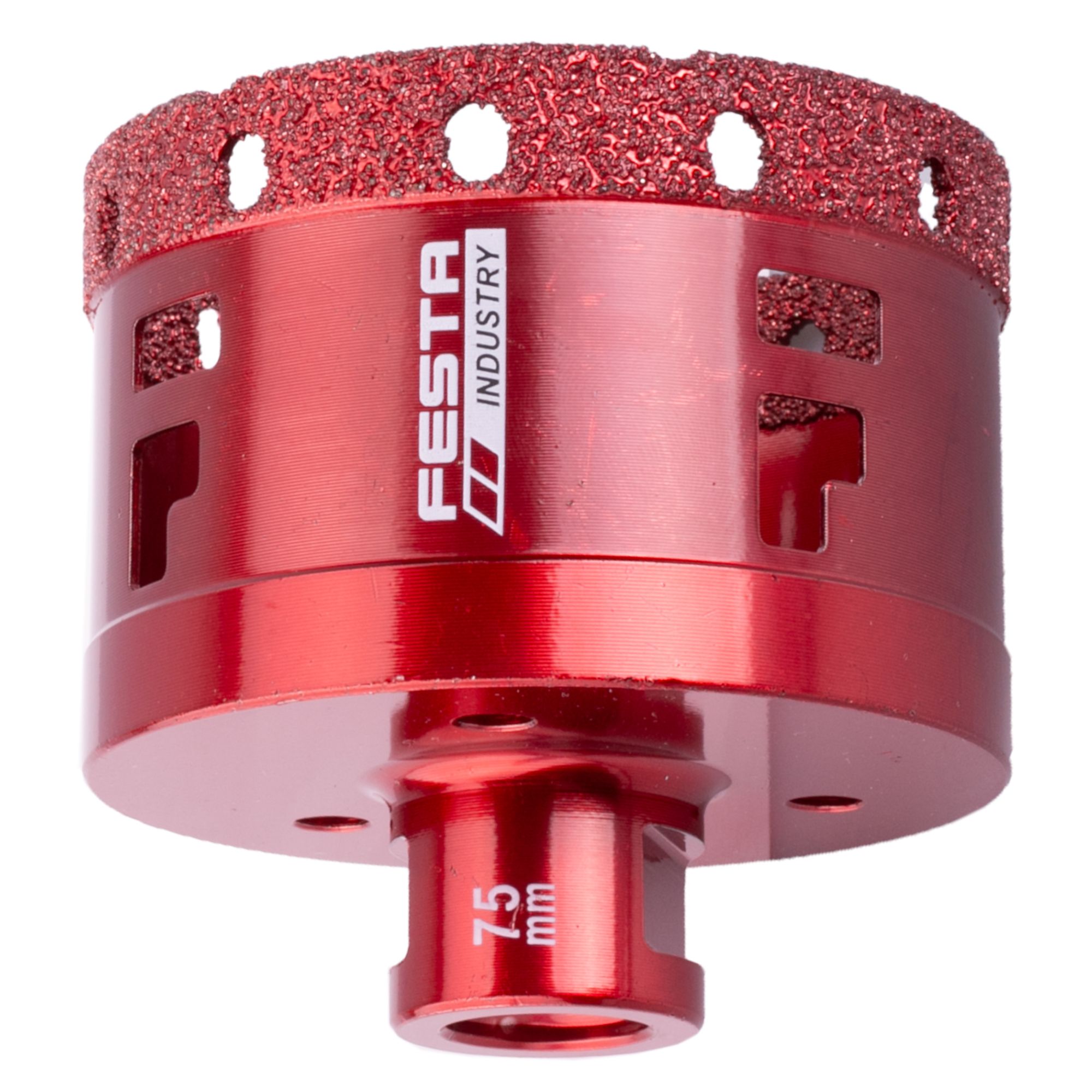 Profesionální vykružovací korunka s ostřím z diamantového prachu. Tyto vykružováky jsou určené na všechny druhy tvrzeného kamene a jeho sloučeniny, keramické dlaždice, mramor, gres (slinutá dlažba), žulu a na většinu stavebních materiálů. Diamantová vykružovací korunka FESTA INDUSTRY je určena pro suché i mokré vrtání. Její přednosti nejlépe vyniknou při použití v úhlové brusce, při použití redukce lze ale využít i v elektrické, nebo aku vrtačce. Korunka není opatřena vodícím vrtákem a vykružování otvoru tak musí probíhat postupně. Nejprve se "zakousne" hrana pod úhlem cca 45° a následně se korunka srovná kolmo k materiálu a dořezává se celý otvor.