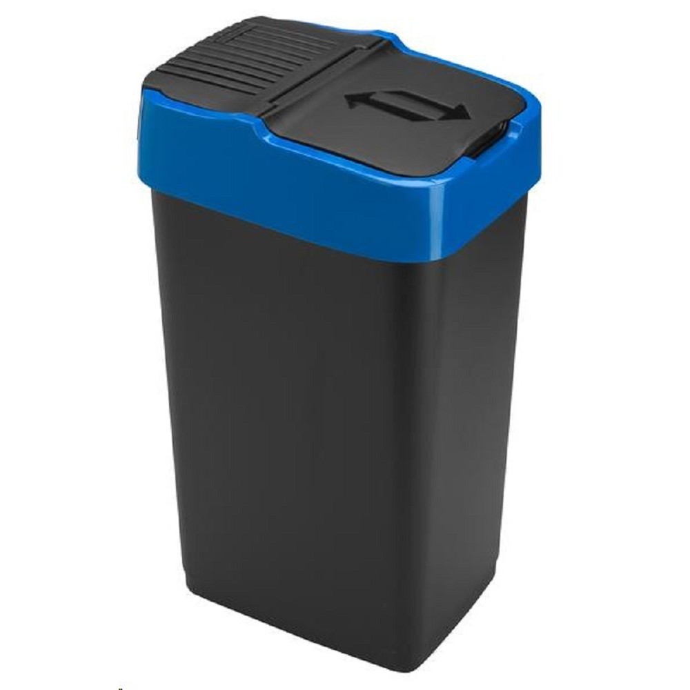 Koš na odpadky 35l plastový 33x26x51 cm modro-černý Odpadkový plastový koš je s výklopným víkem a odnímatelnou horní částí pro snadnější čištění Výborný koš na třídění odpadu - vyrábí se i v kombinaci žluté (na plast) a zelené (na sklo) Rozměry: 33x26x51 cm Objem: 35l Materiál: plast Barva: modro-černá