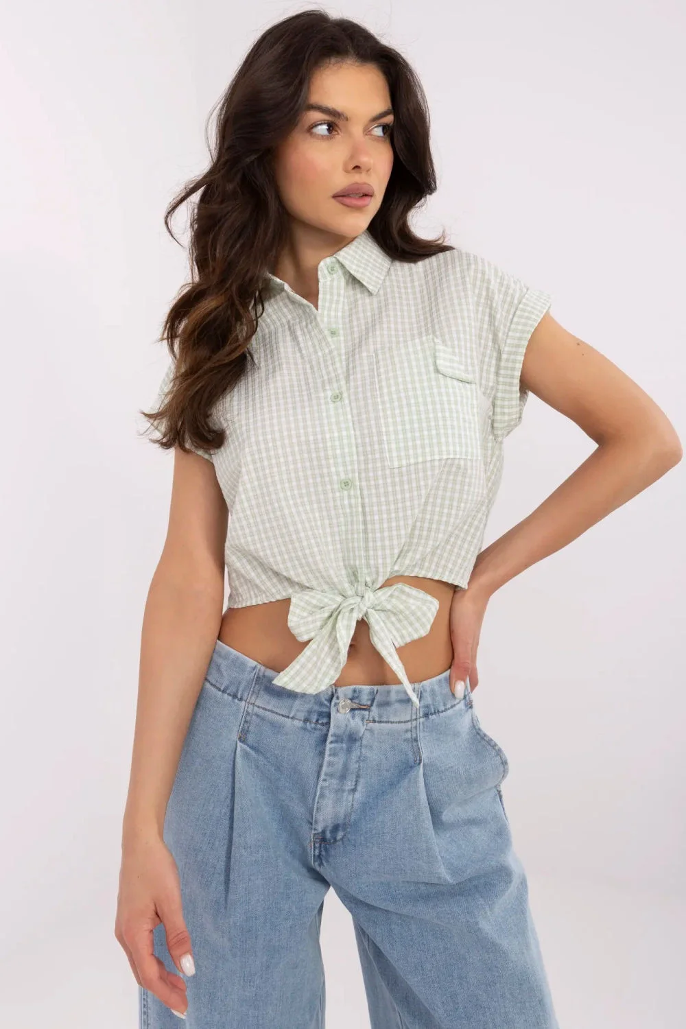 Dámská košile v kostkovaném casual stylu je stylovým a pohodlným návrhem pro každodenní outfit. Vyrobená z bavlněné směsi s polyuretanem, spojuje přirozenou prodyšnost s jemnou pružností, co zajišťuje pohodlné nošení. Krátká délka, krátký rukáv a ozdobné vázání dole jí dodávají lehkost a mladistvý charakter. Klasický límeček, zapínání na knoflíky a kapsa na hrudi zdůrazňují její praktický a zároveň módní styl. Kostkovaný vzor dělá košili skvělým doplňkem jak k džínům, tak k kraťasům. Bavlna 55 % Polyuretan 45 % Velikost Obvod prsou M/L86-91 cmS/M82-86 cm