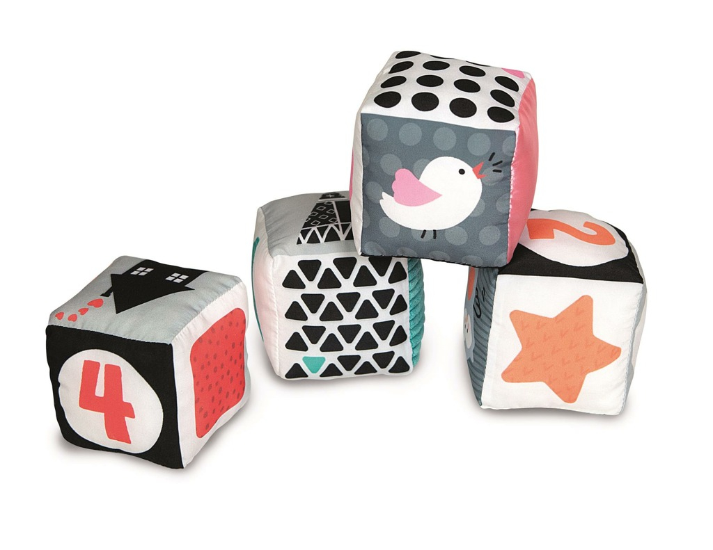 Clementoni černobílé kostky pro nejmenší. Nauč se zvířátka, čísla, tvary a dotkni se příjemných kostek.