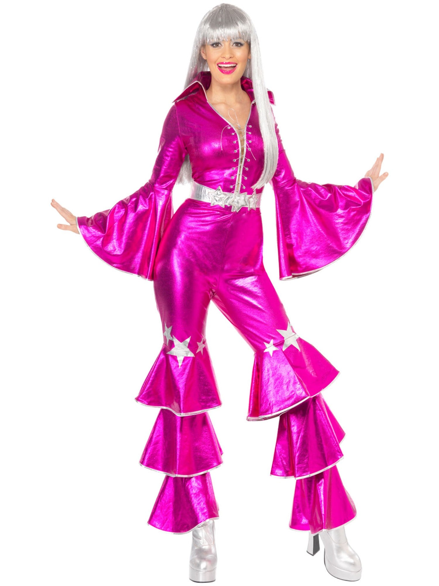 Chcete se stát hvězdou večera a přenést se zpět do zlaté éry diska? Růžový overal ABBA Dancing Dream z vás udělá královnu každé retro party! Tento stylový kostým inspirovaný ikonickými outfity skupiny ABBA je jako stvořený pro všechny milovníky 70. let.