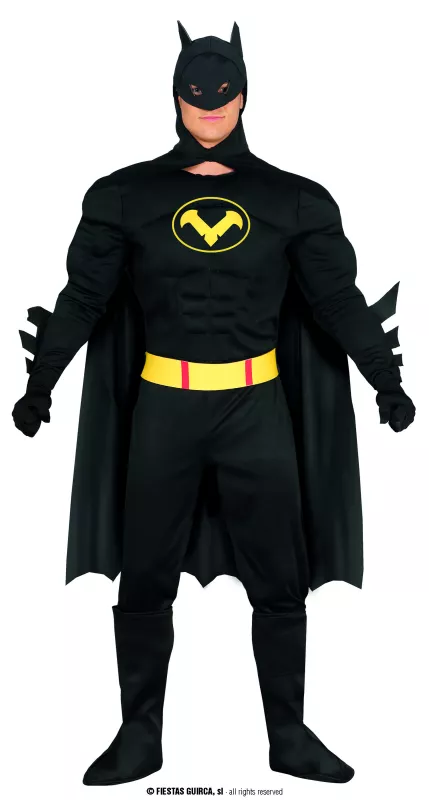 S tímhle kostýmem Batmana tě nikdo nepřehlédne! Detailní černá kombinéza s legendárním netopýřím znakem na hrudi a nezbytným pláštěm ti dodá hrdinský vzhled i sebevědomí.