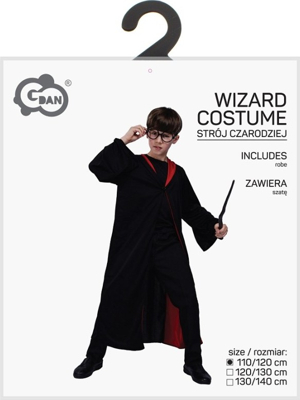 Dětský kostým Čaroděj černo/červený, velikost 110/120 cm. Kostým obsahuje čarodějnickou tuniku.