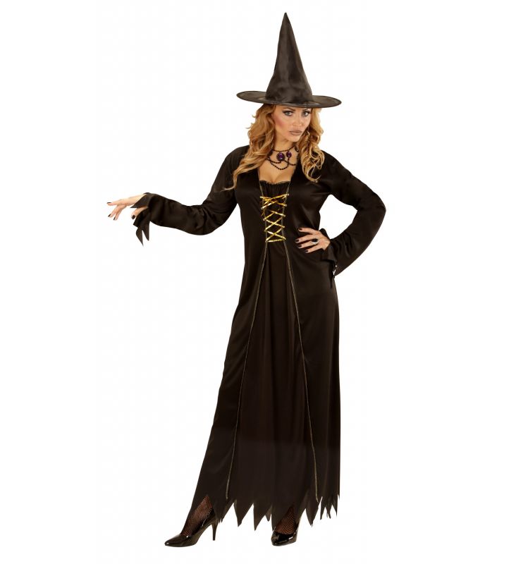 Tento elegantní kostým čarodějnice vám dodá tajemný a okouzlující vzhled. Dlouhé splývavé šaty vytvářejí dramatický efekt a klasický špičatý klobouk dodává autentický vzhled.
