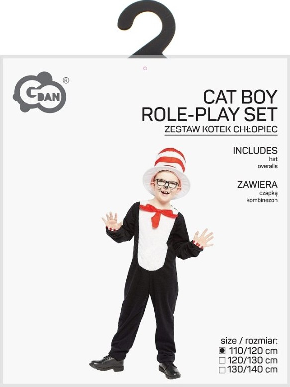 Dětský kostým Černý kocour klučičí, velikost 110/120 cm. Kostým obsahuje kombinézu a klobouk.