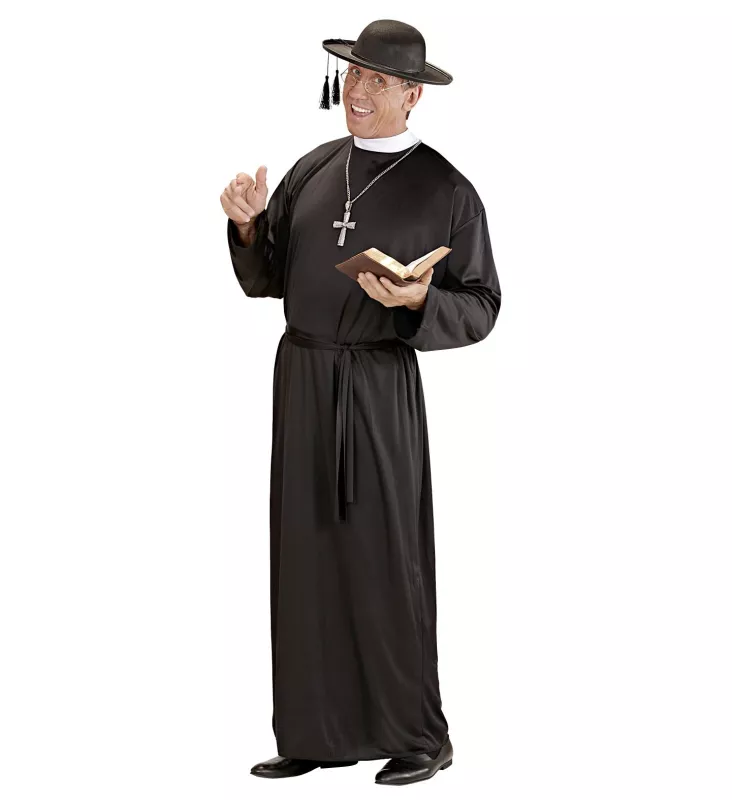 Kostým kněz černý velikost L Černý kostým kněz. Velikost: L Materiál: 100% polyester Kostým faráře obsahuje: šaty s páskem