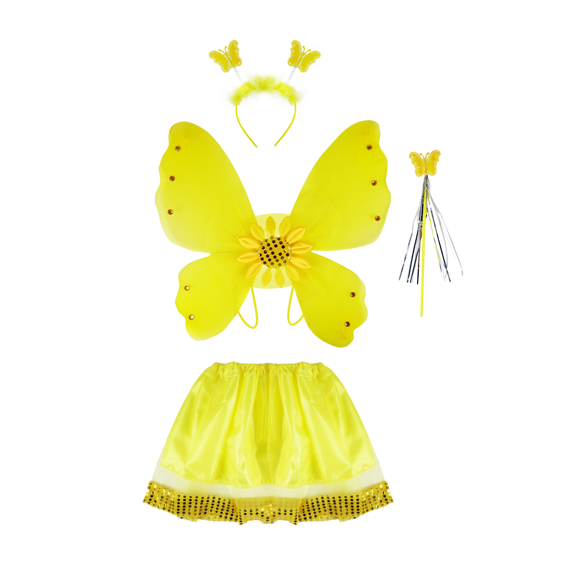 Kostým ve stylu slunečnice pro holčičky na karneval! Kostýmek je určen pro děvčata ve věkovém rozmezí 3-10 let. Balení obsahuje nadýchanou sukýnku, která je ve spodní části lemována zlatými flitry, křídla se slunečnicí a ozdobnými kamínky, čelenku s metalickými motýlky a k tomu sladěnou hůlku. Věk: od 3 let Velikost balení: 400x600x60 mm Zakupte produkt Karnevalový kostým Slunečnice s křídly z kategorie Hry, hračky, párty, karneval | Karneval | Kostýmy od výrobce RAPPA za cenu 195 Kč.