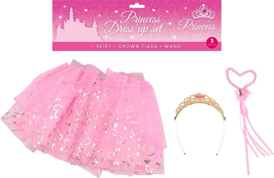 Kostým princezna luxusní – součástí je vícevrstvá sukýnka růžová, korunka a kouzelnická hůlka.