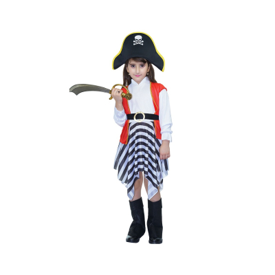 Dětský kostým Pirátka holčičí,velikost 110/120 cm. Kostým obsahuje sukni, halenku, pásek a klobouk.