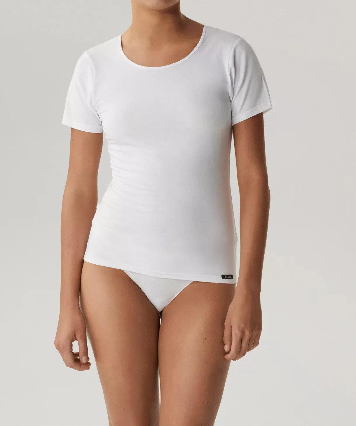 Koszulka Damska, Kolekcja Basic - Bielizna damska Delikatnie opinająca ciało koszulka damska wykonana jest z miękkiej w dotyku bawełny połączonej z elastanem, która dodatkowo jest też bardzo wytrzymała i odporna na mechaniczne działanie. Koszulka zapewnia użytkowniczce niesamowity komfort. Kolor: biały BIAŁY 95% bawełna, 5% elastan