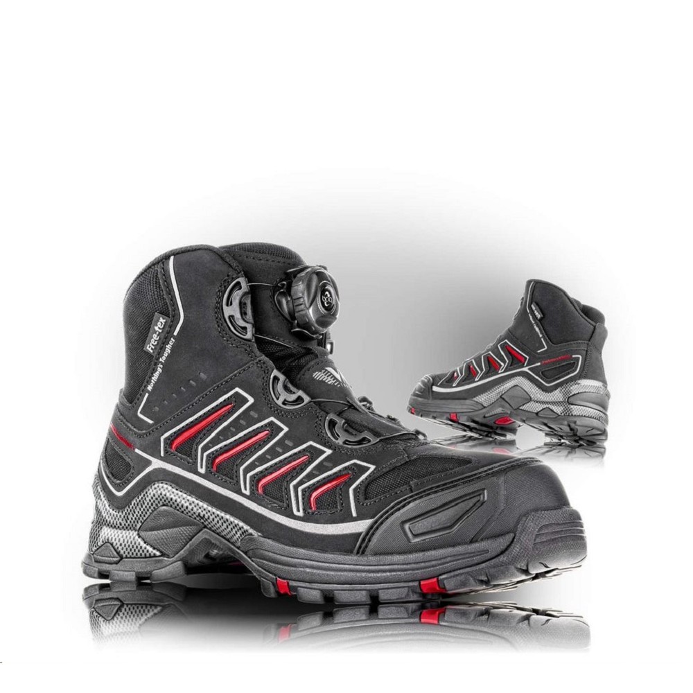 6120-S1P OMAHA - kotníková bezpečnostní obuv - kožená v kombinaci s textilem s uzavíracím systémem BOA svršek broušená hovězinová useň v tloušťce 2,0 - 2,2 mm podšívka laminovaná prodyšná textilie MESH vkládacístélka HI-POLY - anatomicky tvarovaná z lehčené polyuretanové pěny potažená textilií MESH, antistatická podešev EVA/TPU/RUBBER - olejivzdorná, antistatická, protiskluzová velikost 40 - 47 norma ČSN EN ISO 20347:2012 (EN ISO 20347:2011)