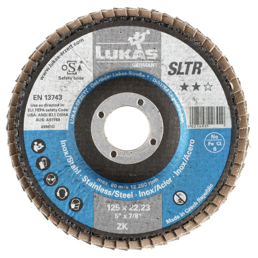 Lamelový kotouč LUKAS SLTR 125 mm ZK40 – profesionální brusný kotouč pro ocel a nerezHledáte vysoce výkonný lamelový kotouč pro efektivní broušení kovů Lamelový kotouč LUKAS SLTR 125 mm ZK40 je ideální volbou pro profesionály i náročné kutily. Díky zirkonkorundovým lamelám zajišťuje vysokou rychlost úběru materiálu, dlouhou životnost a rovnoměrné broušení s minimální námahou.Díky šikmému provedení (SLTR) se přizpůsobí povrchu a umožňuje precizní opracování i v méně přístupných místech. Sklolaminátový nosič garantuje pevnost a stabilitu, zatímco samoostřící efekt brusného materiálu udržuje konstantní výkon po celou dobu používání.Proč si vybrat LUKAS SLTR 125 mm ZK40> Vysoký úběr materiálu – zirkonkorundové lamely pro maximální efektivitu> Samoostřící efekt – konstantní brusný výkon po celou dobu použití> Šikmé provedení (SLTR) – snadnější přístup k hůře dostupným místům> Odolný sklolaminátový nosič – nízká hmotnost, stabilita a dlouhá životnost> Vhodný pro ocel, nerez a další kovy – ideální na svary, hrany i velké plochyIdeální pro použití na:> Broušení oceli, nerezu, litiny a titanu> Odstraňování rzi, okují a starých nátěrů> Opracování svarů, srážení hran a hrubé broušeníPotřebujete spolehlivý lamelový kotouč pro profesionální broušení kovů Objednejte LUKAS SLTR 125 mm ZK40 a užijte si špičkový výkon, dlouhou životnost a precizní výsledky!