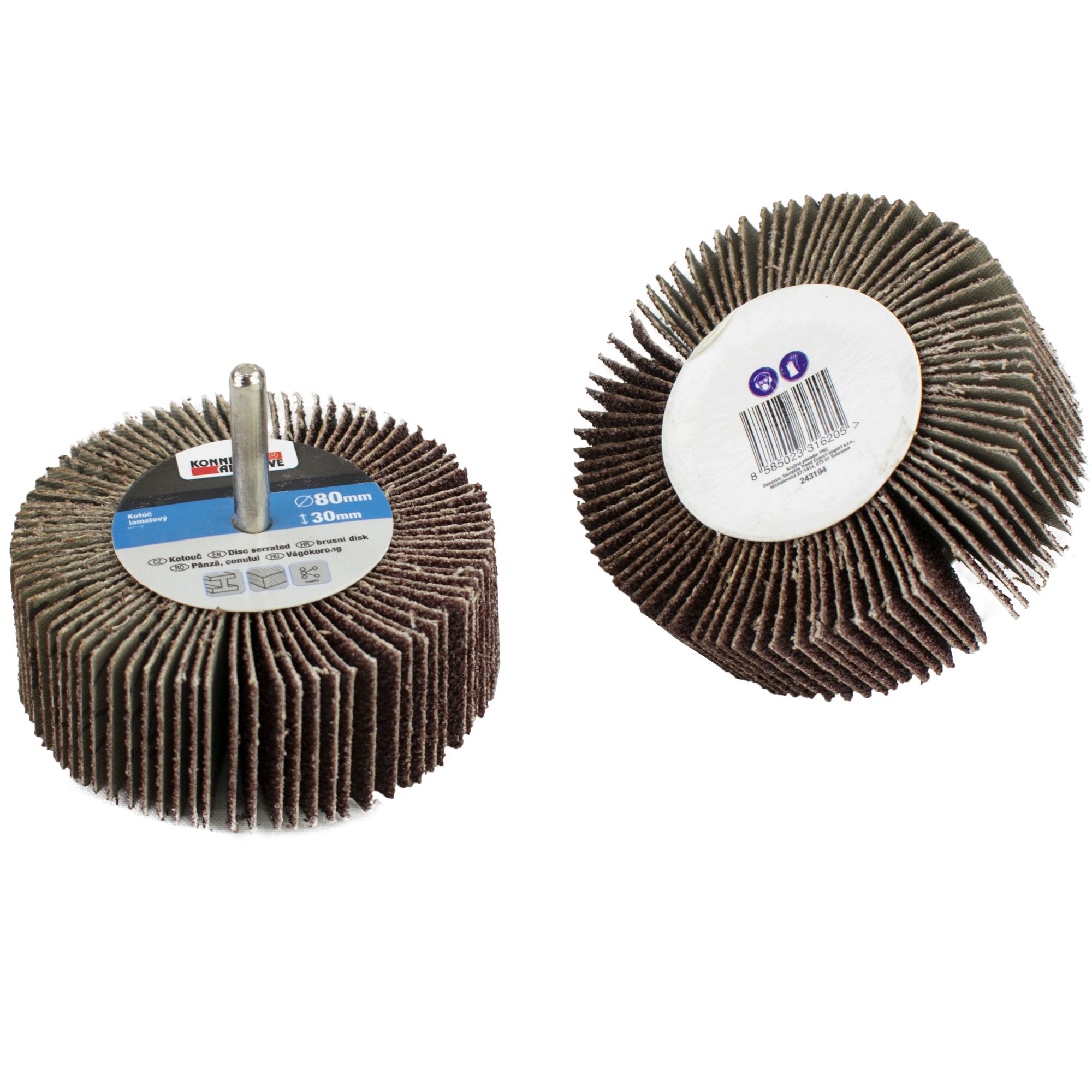 Vějířový stopkový lamelový kotouč 80 x 30 mm s hrubostí 40 – pro přesné broušení a povrchové úpravyVějířový stopkový lamelový kotouč je ideální volbou pro efektivní broušení, srážení hran a povrchovou úpravu různých materiálů. Díky radiálně uspořádaným lamelám přizpůsobuje svůj tvar broušenému povrchu, což umožňuje rovnoměrné a precizní opracování i méně přístupných míst.Určený pro použití s vrtačkou nebo přímou bruskou, je skvělým nástrojem jak pro domácí kutily, tak pro profesionální řemeslníky. Lamelové kotouče jsou vhodné pro pravý směr otáčení a díky kvalitnímu brusnému materiálu poskytují dlouhou životnost a konzistentní výkon.Hlavní výhody:> Flexibilní vějířová konstrukce – přizpůsobí se broušenému povrchu> Univerzální použití – vhodné pro dřevo, kov, plasty a další materiály> Rovnoměrné broušení – zabraňuje přehřívání a poškození materiálu> Snadná montáž – vhodné pro vrtačky a přímé brusky> Kvalitní brusný materiál – dlouhá životnost a spolehlivý výkonVyužití:> Broušení dřevěných, kovových a plastových povrchů> Odstraňování rzi, starých nátěrů a nečistot> Úprava hran a jemné dokončovací práceVylepšete svůj pracovní arzenál s kvalitním vějířovým lamelovým kotoučem pro precizní a efektivní broušení!