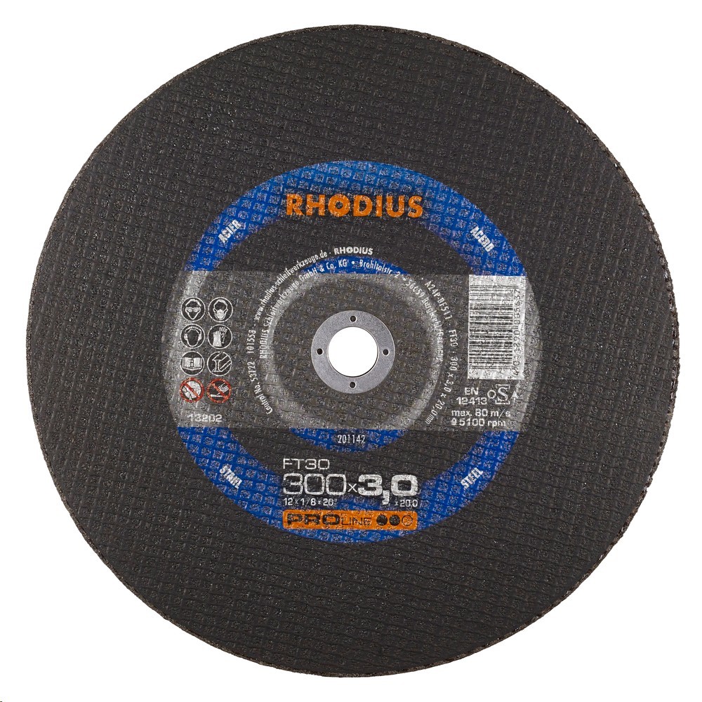 Kotouč řezný 300 x 3 x 20 mm OCEL FT30 Rhodius ProLine 201142 Obzvlášť výkonné řezné kotouče pro benzínové řezačky a elektrické řezací stroje. Zesílené armování pro vysoké boční zatížení. Dlouhá životnost. Vysoká řezná kvalita a rychlost. 300 x 3.0 x 20.0 mm FT 30 Rhodius ProLine foto ilustrační