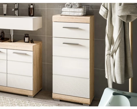 Komoda P9 Barva korpusu: Bílá, Lišta: Dub - canyon, Barva dvířek: Wenge