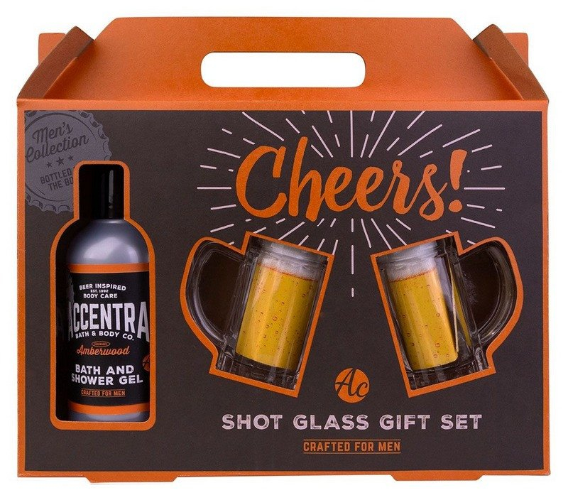 Obsahuje: 150ml gel sprchový/koupelový, 2x panáky ve tvaru pivních půllitrů (4cl každý), vůně: jantar a dřevo