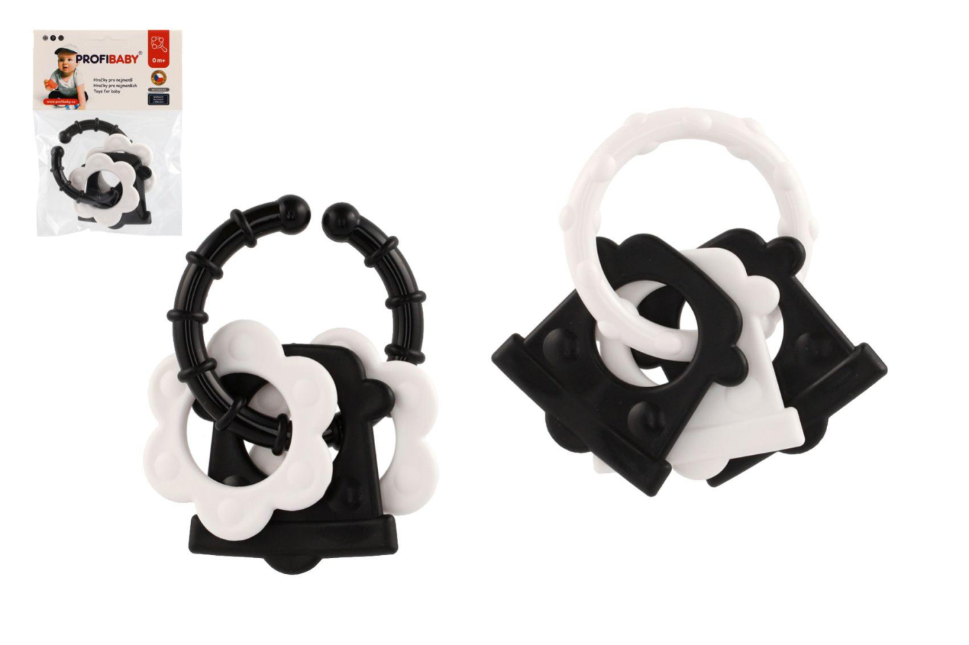 Chrastítko s úchytem pro lepší držení, rozvíjí zrakové a motorické dovednosti dítěte. Vyrobeno ze zdravotně nezávadných materiálů, splňujících náročné hygienické normy. Vhodné od narození.