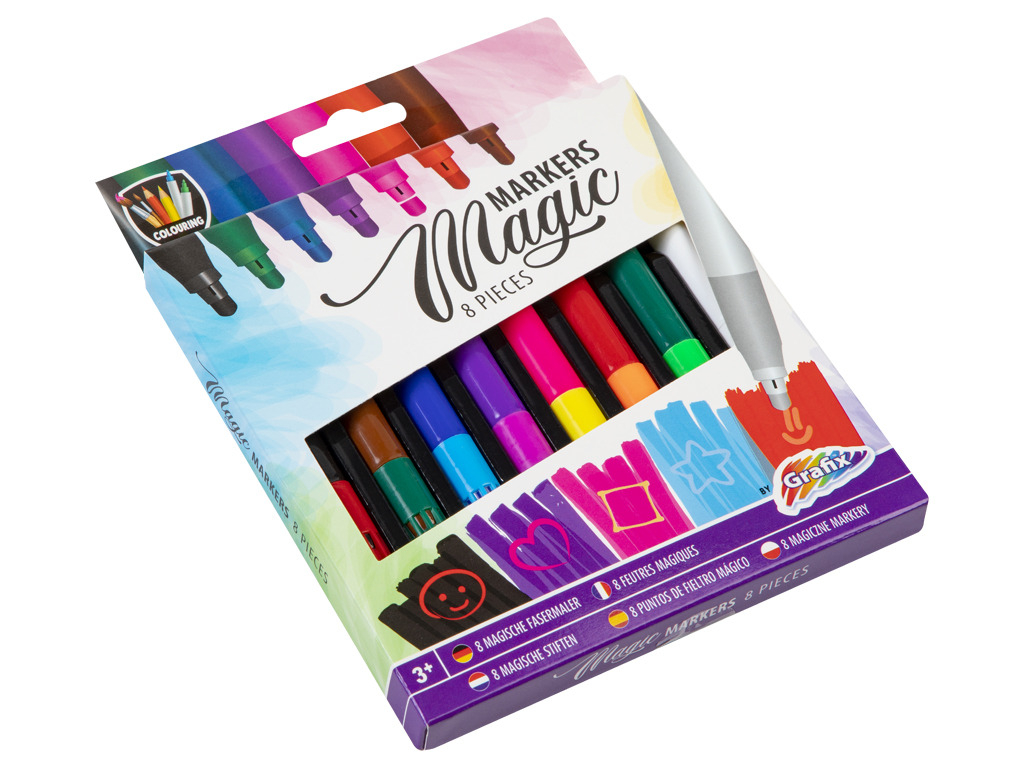 Magická pera se zmizíkem. Nakresli barevnou fixou co tě napadne a poté můžeš zmizíkem kreslit na již namalované obrázky a uvidíš, jak se bude barva měnit. V balení je 7 kusů fix a jeden zmizík. Rozměr balení: 14 x 18 x 1,5 cm Vhodné pro děti od 3 let
