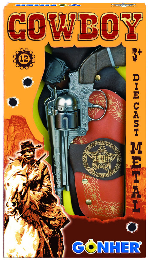 Sada pro kovboje + šerifská hvězda kovový, stříbrný na kapslíky – dvanáct ran. Vyrobeno ve Španělsku.