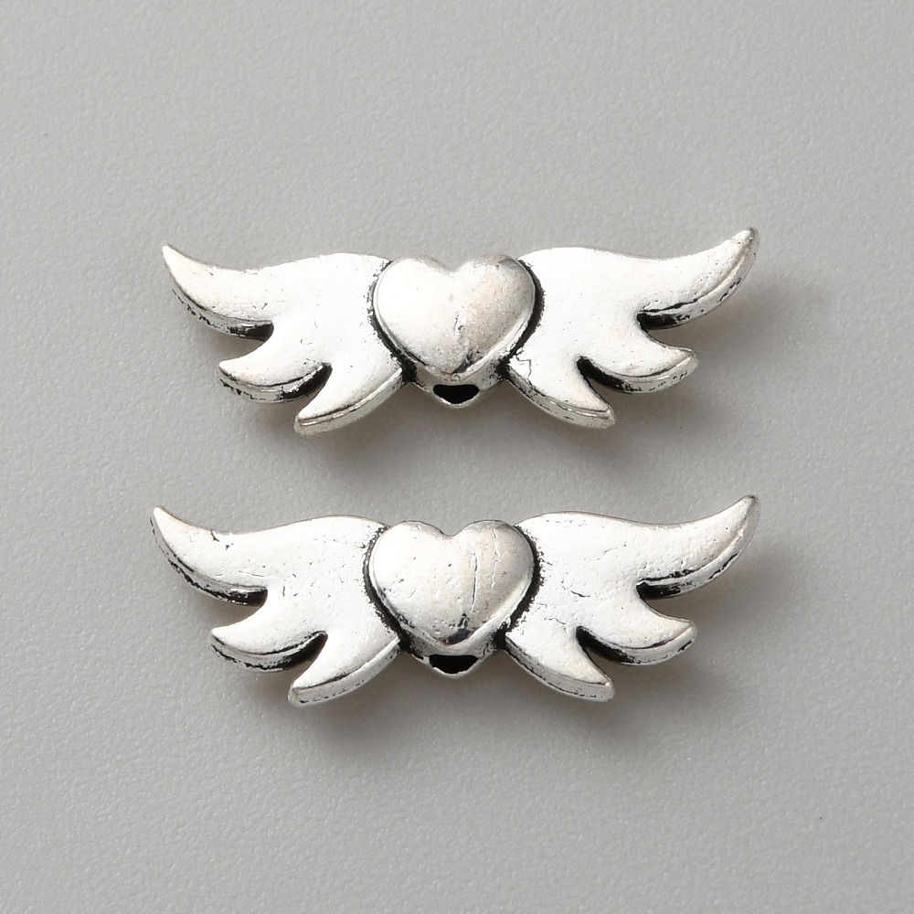 Křídla se srdcem – láska a lehkost v jednom detailu Spojte symboliku svobody a lásky v jednom komponentu. Tento korálek ve tvaru roztažených křídel s jemným srdíčkem uprostřed dodá vašim šperkům cit a význam. Vyroben z kvalitní zinkové slitiny v tibetském stylu, s krásným antik stříbrným vzhledem. Specifikace: Materiál: Zinková slitina Tvar: Křídla se srdcem (tibetský styl) Barva: Starostříbrná Rozměry: cca 20 mm (šířka) × 7 mm (výška) × 3 mm (tloušťka) Průvlek: cca 1,4 mm Vlastnosti: – Detailní zpracování s jemnými rysy – Odolný a lehký – Vhodný pro náramky, náhrdelníky i přívěsky ✨ Skvělý pro tvorbu šperků s hlubším významem – ideální pro dárek z lásky nebo andělské motivy. Korálky prodáváme po jednom kusu.