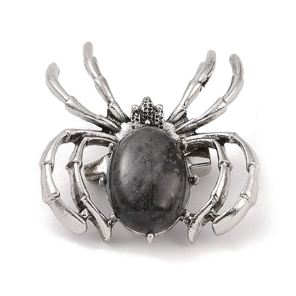 Brož Pavouk s larvikitem – tajemný šperk s metalickým leskem Tato výrazná brož ve tvaru pavouka přitáhne pohledy svou hloubkou a strukturou. Tělo pavoučka tvoří přírodní larvikit, kámen s kovově šedým podkladem a jemným modravým zábleskem, který připomíná noční oblohu. V kombinaci s antik stříbrným kovem působí brož elegantně a lehce mysticky. 🕷 2v1: brož i přívěsek – na zadní straně se nachází klasický brožový špendlík a také očko k zavěšení. Lze ji nosit na oblečení i jako přívěsek na řetízku nebo stuze – záleží jen na vaší fantazii. 💎 Larvikit je známý jako kámen ochrany, vnitřní síly a intuice – ideální pro ty, kteří se nebojí vystoupit z davu. Rozměry: cca 34 mm (šířka) × 37 mm (délka), tloušťka 8 mm Velikost očka k zavěšení: 4,5 × 4,5 mm Materiál: přírodní larvikit, slitina kovů s úpravou antik stříbro Zapínání: brožový špendlík + očko na zavěšení Stylový doplněk s charakterem, který vynikne na tmavém saku, kabátu i jako netradiční šperk na krk. Brož / přívěsek prodáváme po jednom kusu.