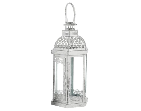 Kovová lucerna v bílé barvě v romantickém stylu vykouzlí ve vašem domově tu správnou atmosféru. Výška 44 cm.
