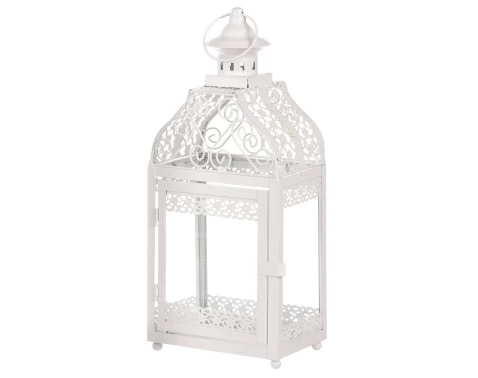 Kovová lucerna v bílé barvě v romantickém stylu vykouzlí ve vašem domově tu správnou atmosféru. Výška 37 cm.