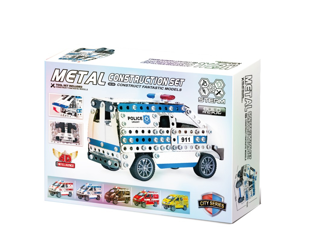 Postavit jedinečné policejní auto ze 314 dílků je náročná, ale zároveň nesmírně uspokojující úloha. Sada obsahuje kombinaci kovových dílů a plastových doplňků, které se spojují pomocí šroubků a matiček. Tento sofistikovaný systém stavby je navržen tak, aby stavění bylo jednoduché, zábavné a zároveň výzvou.