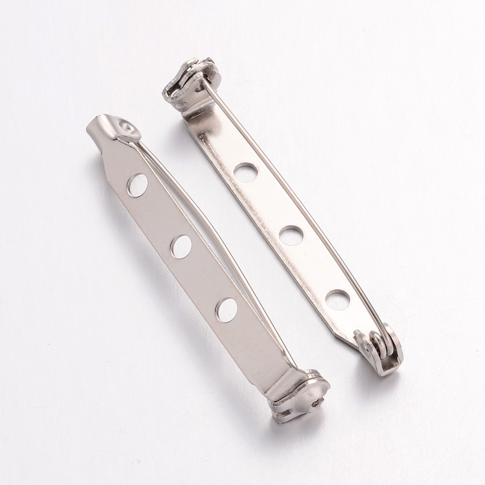 Kovové brožové můstky se třemi očky, platinová barva Tyto kovové brožové můstky v platinové barvě jsou skvělým základem pro výrobu originálních broží. Díky třem očkům umožňují snadné připevnění korálků, přívěsků, třásní nebo jiných dekorativních prvků, takže si můžete vytvořit jedinečný šperk podle vlastní fantazie. Vlastnosti: ✔ Odolný kovový materiál – železná konstrukce zajišťuje pevnost a dlouhou životnost. ✔ Tři očka pro zavěšení – ideální pro kreativní design s korálky, řetízky nebo třásněmi. ✔ Univerzální použití – brože lze nosit na kabátech, svetrech, kloboucích i taškách. Velikost: Délka: 38 mm Šířka: 5 mm Otvor: 2 mm Tloušťka jehly: 1 mm Díky jednoduchému, ale praktickému designu jsou tyto brožové můstky ideální pro ruční výrobu originálních šperků. Platinová barva dodává elegantní vzhled a snadno se kombinuje s různými styly. Prodáváme je po jednom kuse, takže si zákazníci mohou objednat přesně tolik, kolik potřebují.