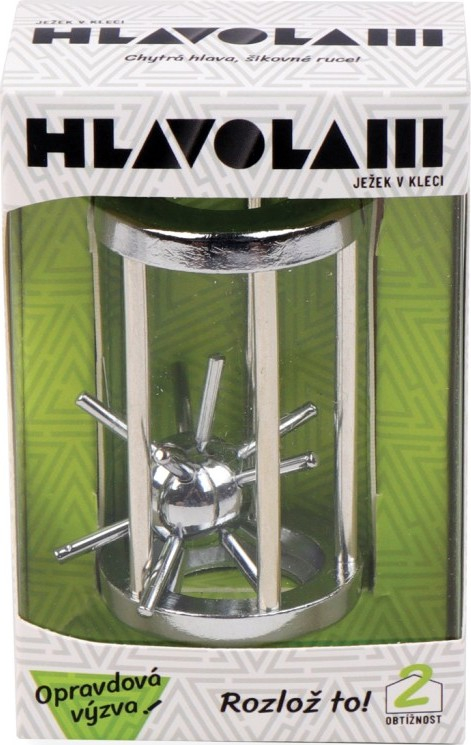 Ježek v kleci! Král mezi hlavolamy. Postav se výzvě! Vyzkoušej svou trpělivosti, své schopnosti, svou šikovnost, bystrost, a především zapoj své mozkové závity. Rozlož to a zase to slož. Vypadá to jednoduše, ale je to opravdu tak jednoduché? Tento kovový hlavolam je určený pro začátečníky. Ve stupnici obtížnosti jedna až pět získal hodnocení dvě. Zábava s hlavolamem rozvíjí tvou soustředěnost, jemnou motoriku, logické myšlení, koordinaci rukou a očí. Pro děti od 7let.