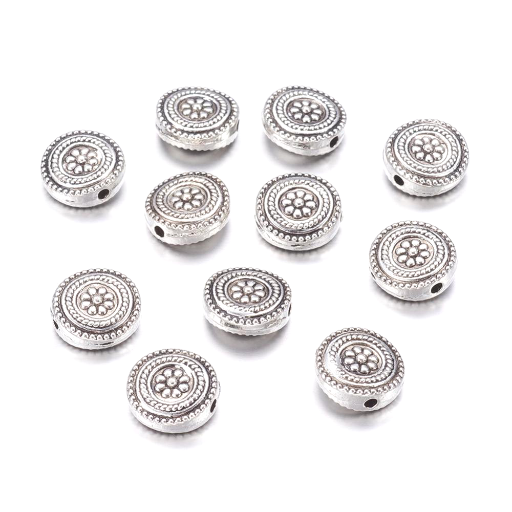 Trubičkový korálek z nerezové oceli - tibetský styl - starostříbrný - 24 x 9 mm - 1 ks